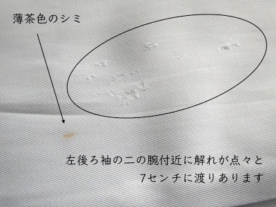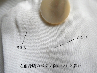 その他にも経年による使用感や小さな傷、汚れ等多々ございます。ご着用に問題のある大きなシミ汚れ・穴破れ等の特筆すべきダメージはございませんが、こちらのダメージ具合を良いと思って頂ける方、普段より古着にご理解のある方のご購入をオススメします。神経質な方のご購入はお控えください。