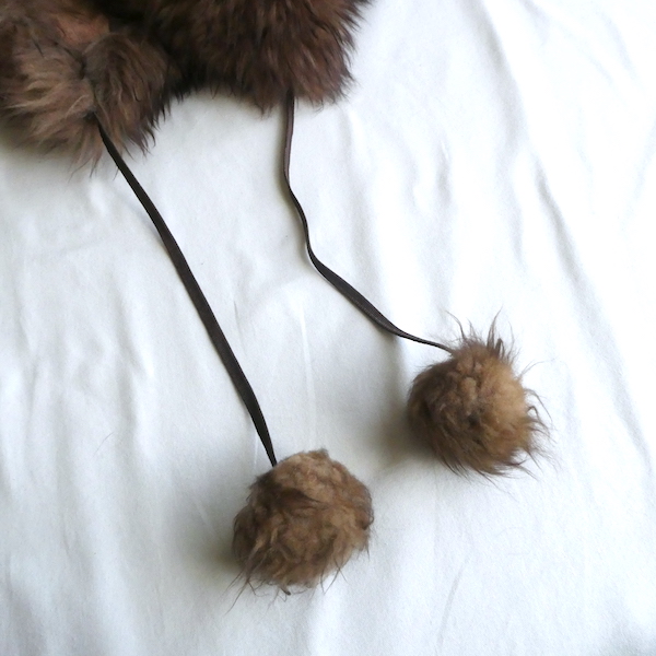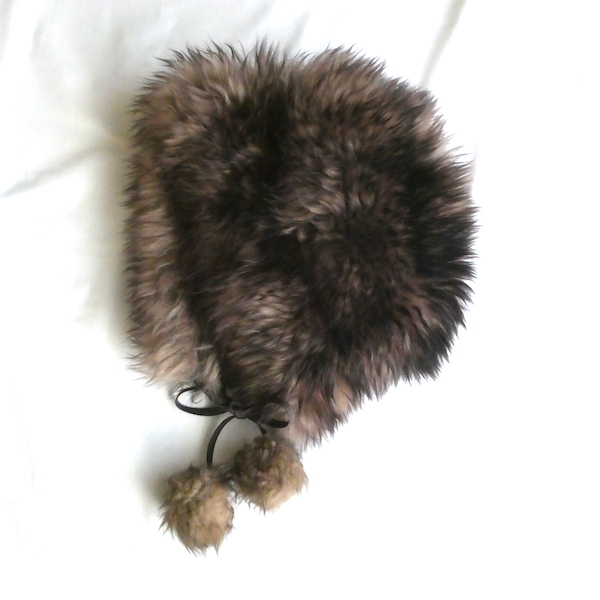 ムートンのポンポン付き帽子です。ミルクティー色の根本に、焦茶色の毛先が可愛らしい、毛足の長いリアルファー。裏側のラムレザー部分の乾燥も無く、柔らかさが残っています。顎紐は結んでもそのまま垂らしても◎。先についたポンポンがポイント。ボリューム感を楽しんで欲しいアイテムです。