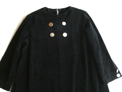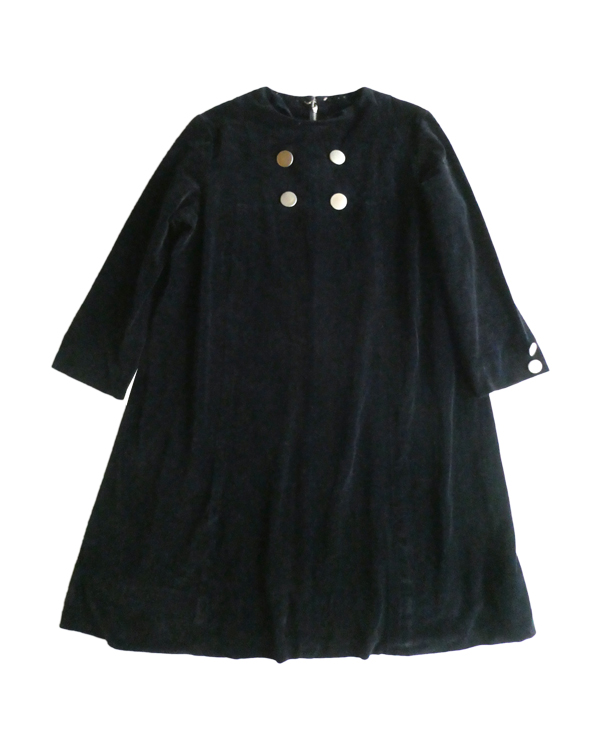 60’s シルバーボタンベロアAラインワンピース