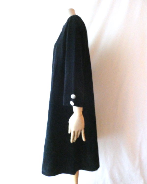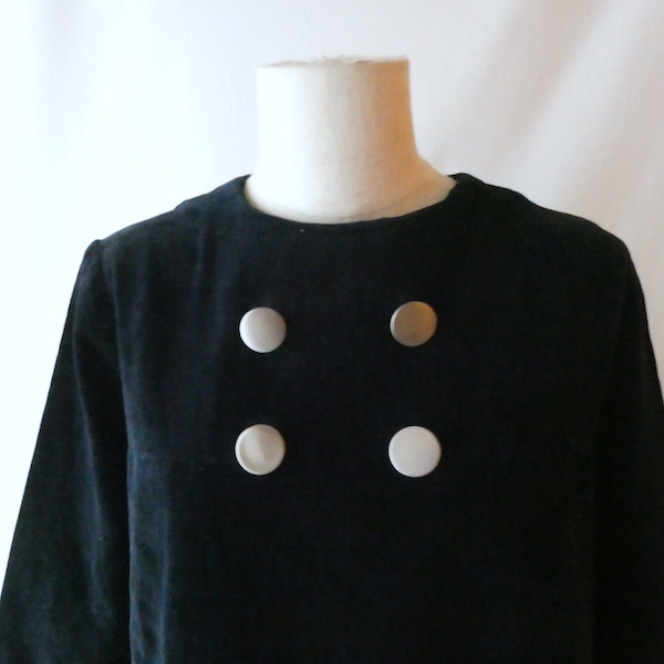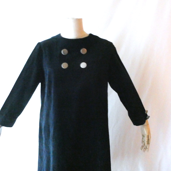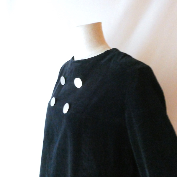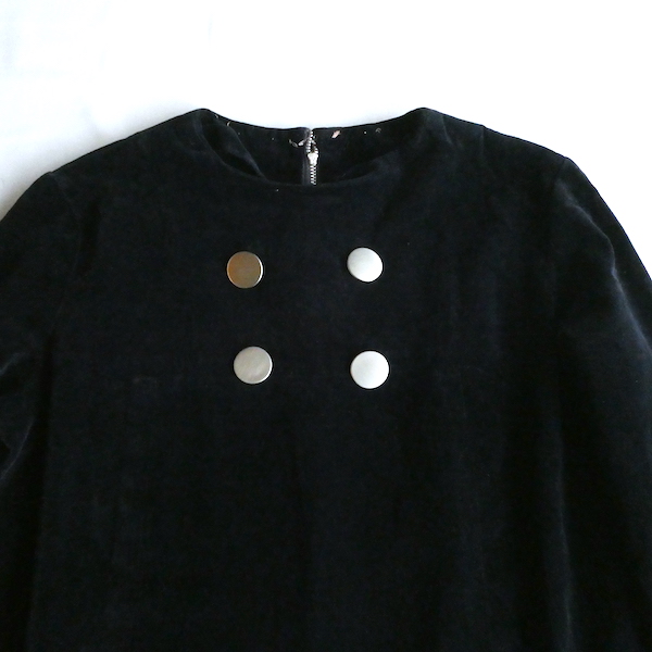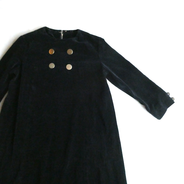60’s black velour silver button A line dress
