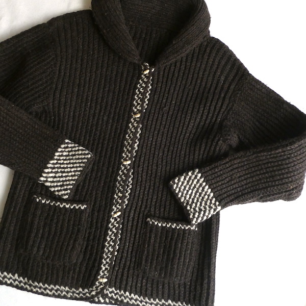 60’s dark brown off white lines knit cardigan