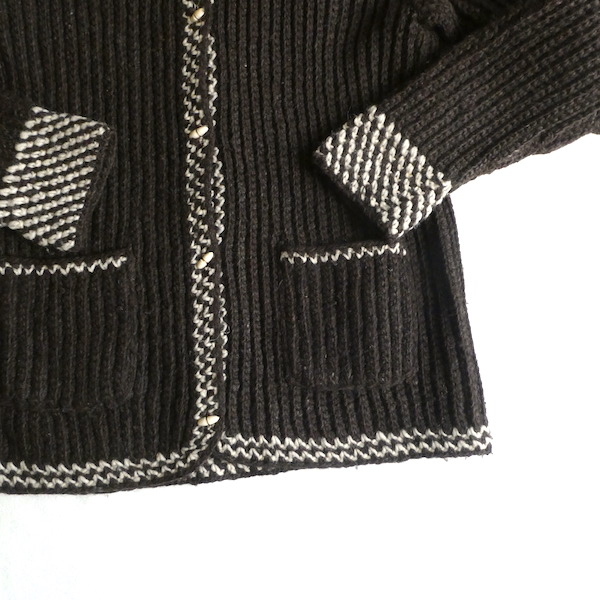 60’s ダークブラウン白ラインショールカラーニットカーディガン