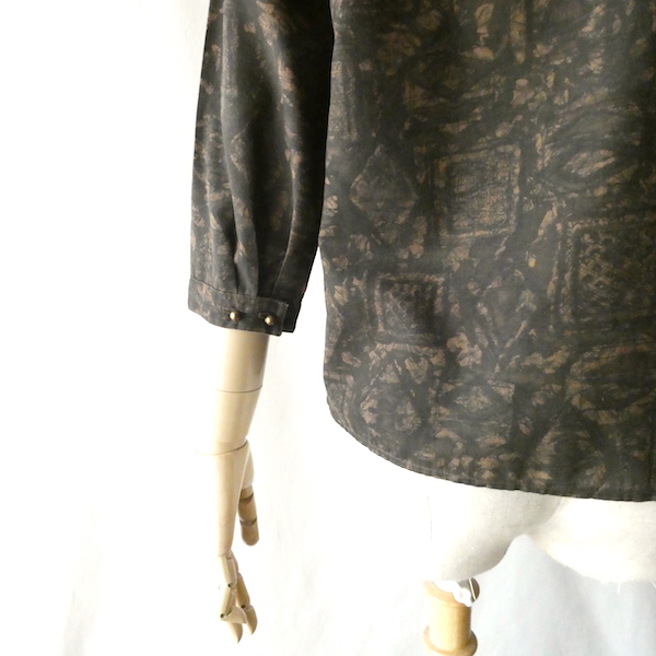 60’s フラットカラーブラウン柄ブラウス