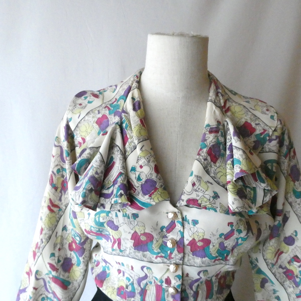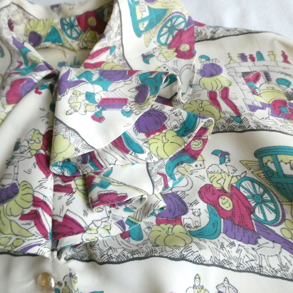 60’s ruffle collar cendrillon print rayon dress