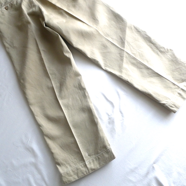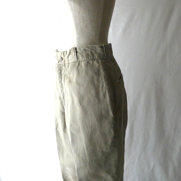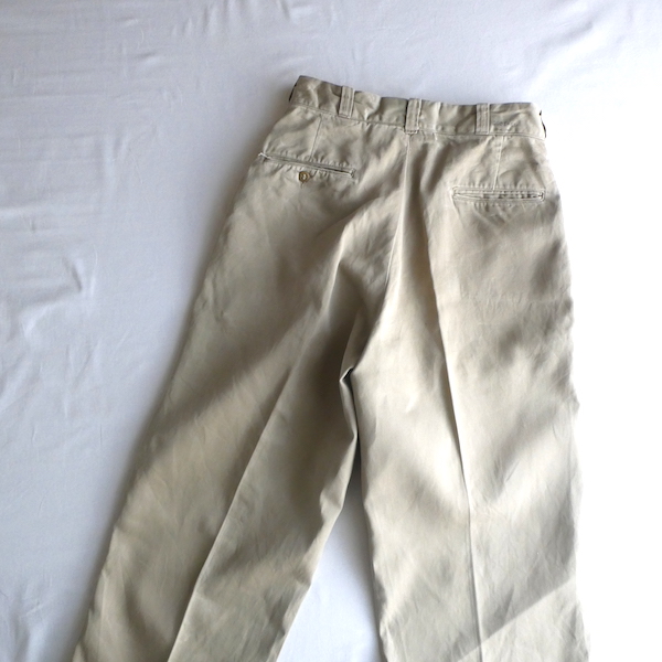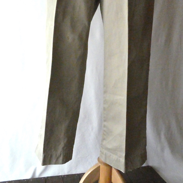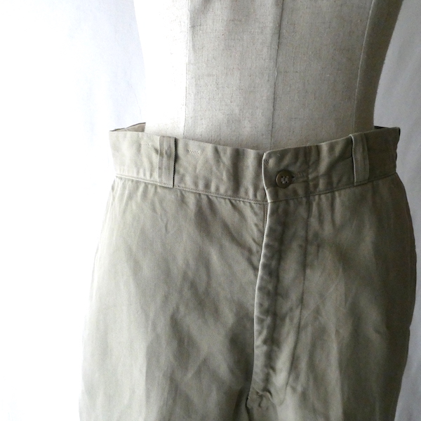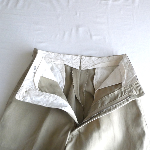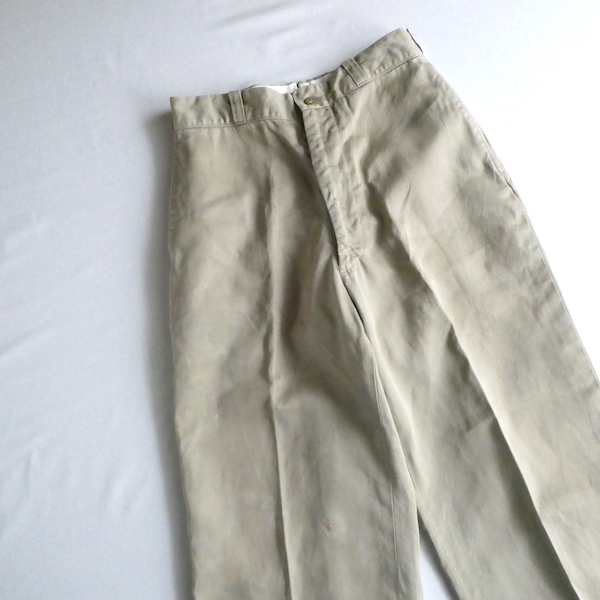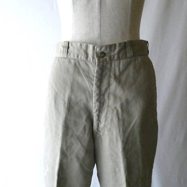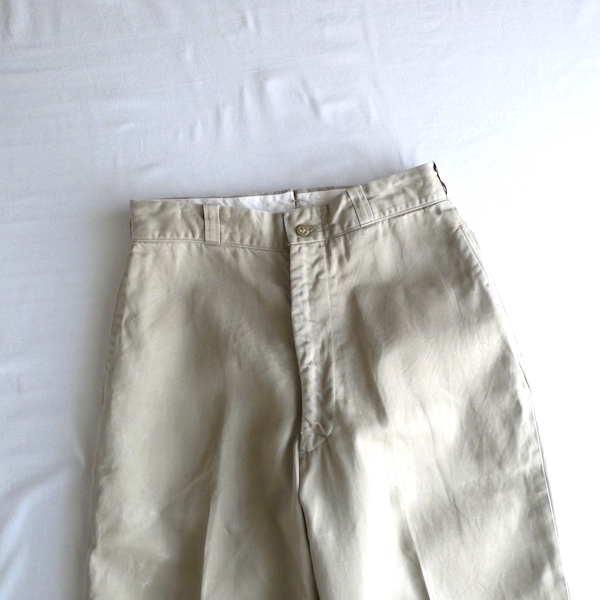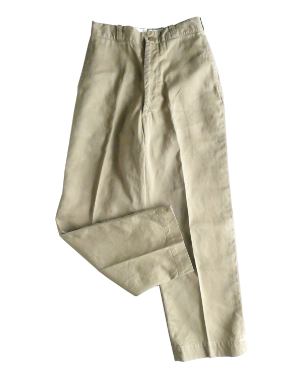 US Armyのチノパンです。パリッとしっかりしたコットンツイル生地。ジップアップタイプで極々定番スタイル。センタープレスはアイロンで潰せるのでお好みで(折りに沿って少々跡があります)オールシーズン使えて1本持っていると重宝するアイテムです。