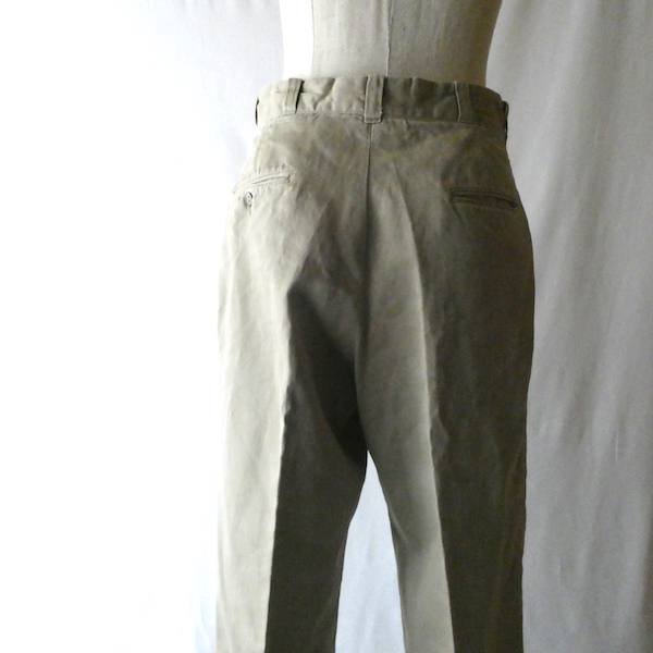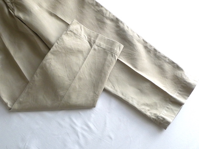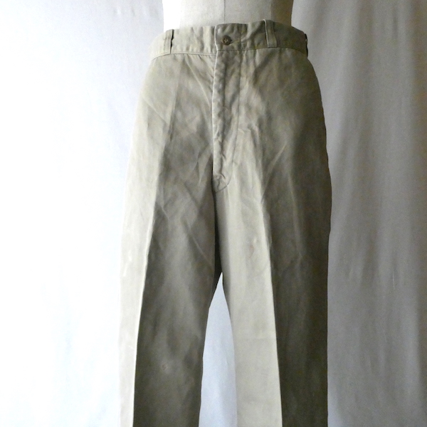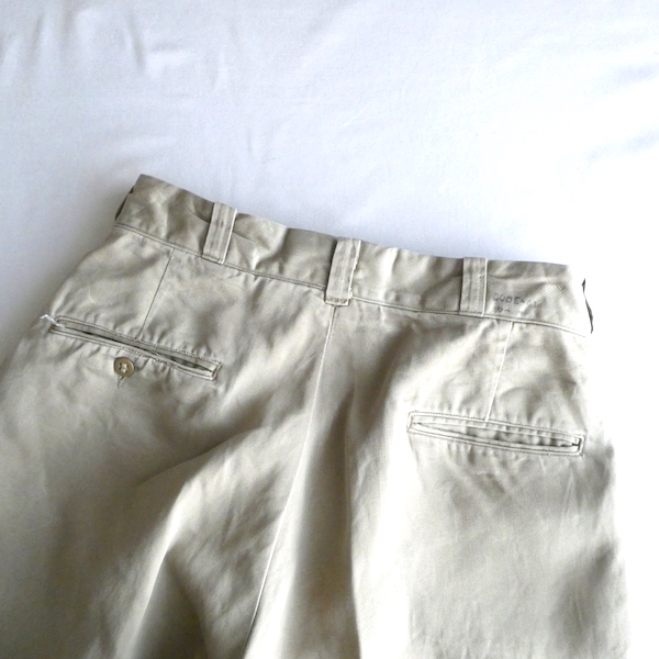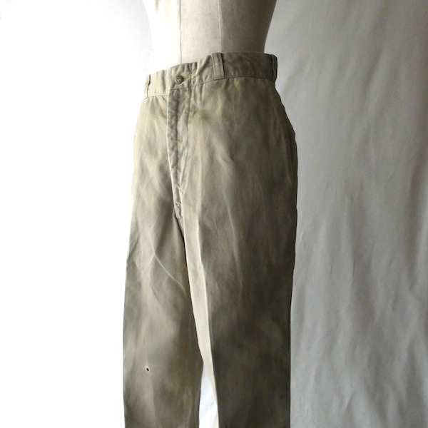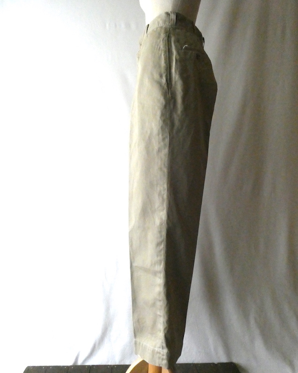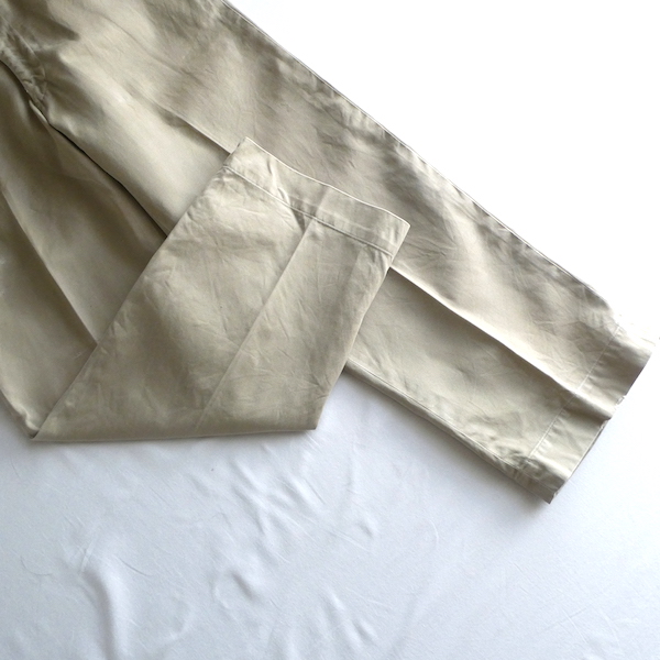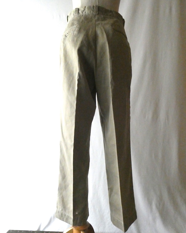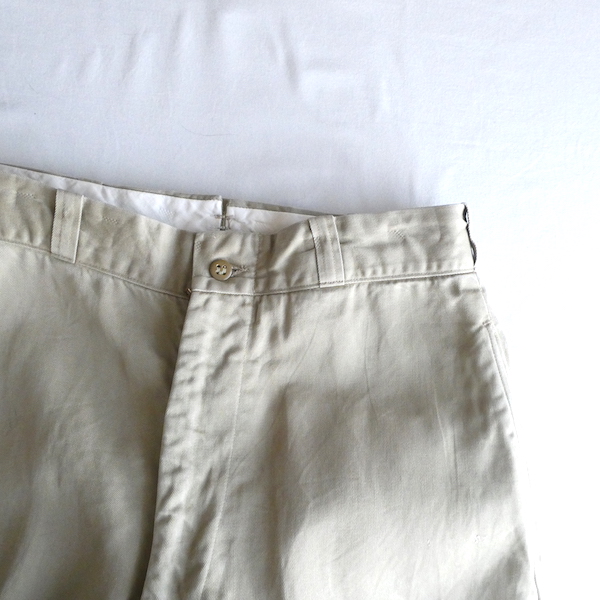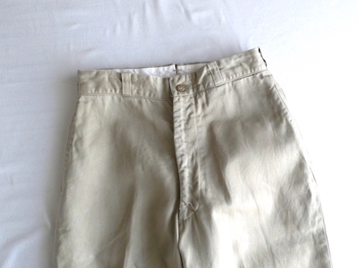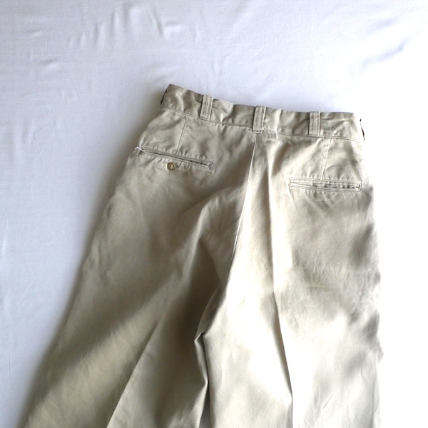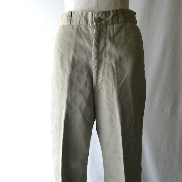 US Armyのチノパンです。パリッとしっかりしたコットンツイル生地。ジップアップタイプで極々定番スタイル。センタープレスはアイロンで潰せるのでお好みで(折りに沿って少々跡があります)オールシーズン使えて1本持っていると重宝するアイテムです。