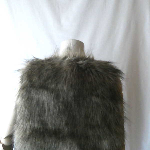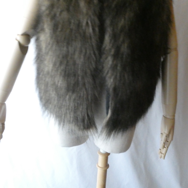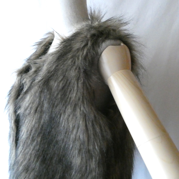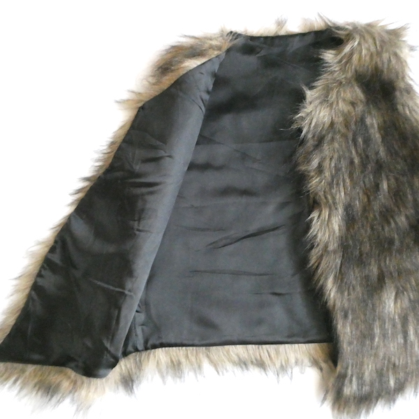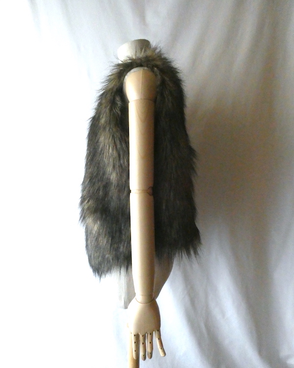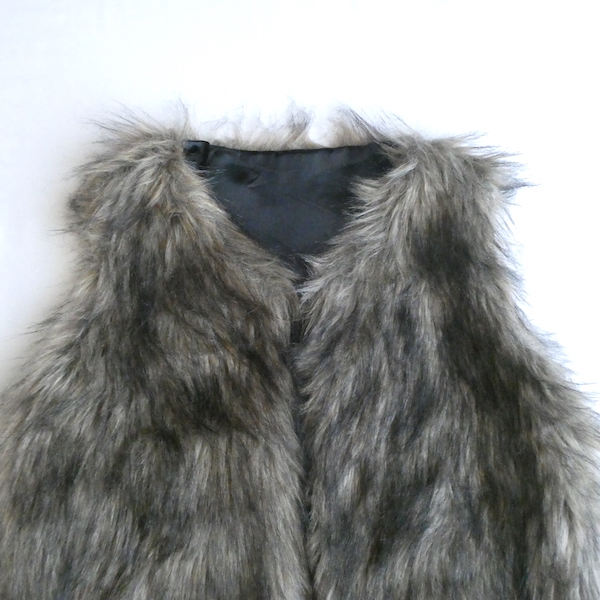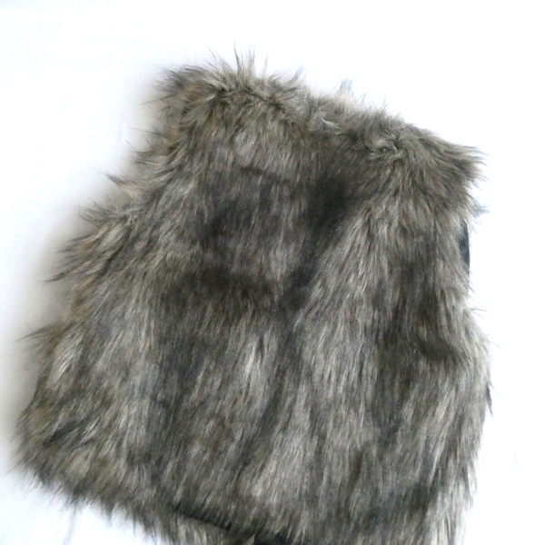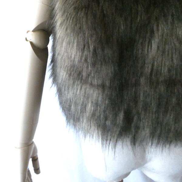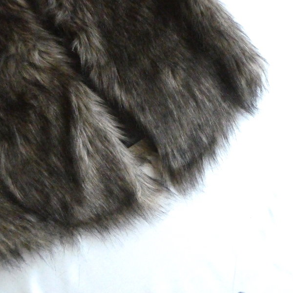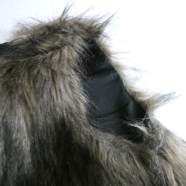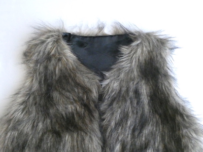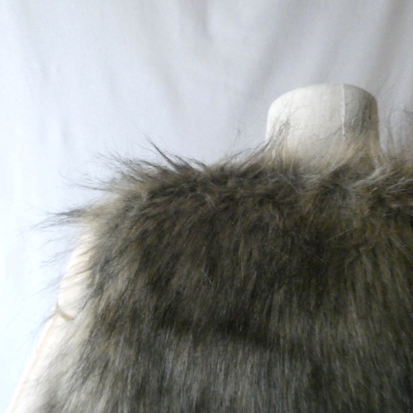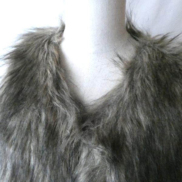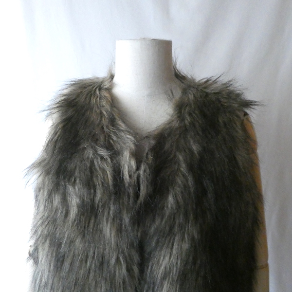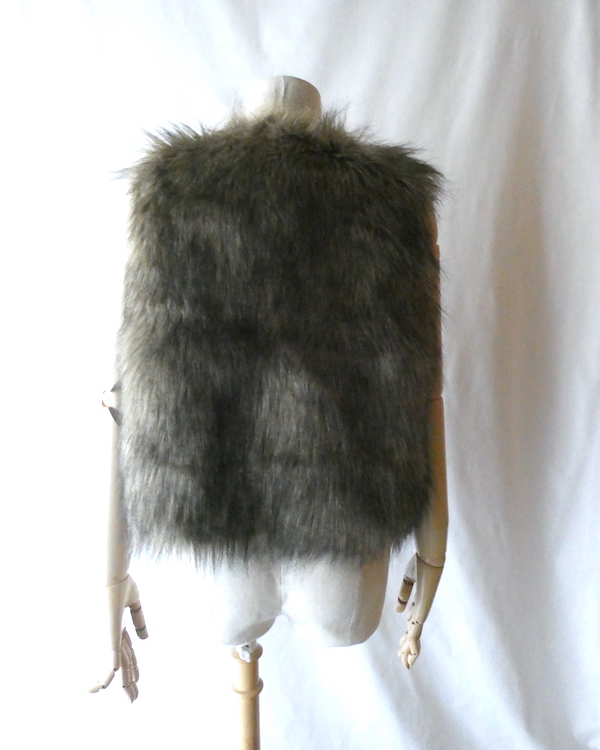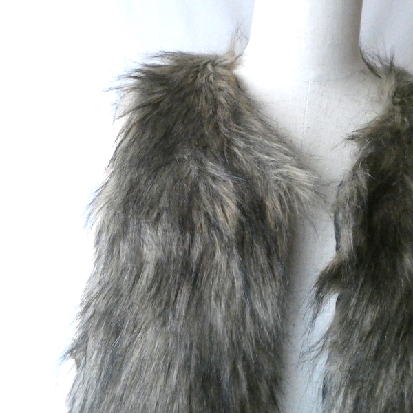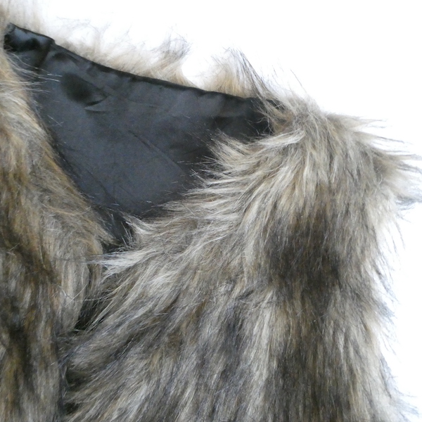 フェイクファーのベストです。毛足の長い柔らかな触り心地。ブラウンベースに毛先は黒、根元の毛も密で、再現度の高いフェイクファーになっています。フォックスファーのような雰囲気。アームホールの大きさも割とあるので、アウター等とのレイヤードにも使えそうです。