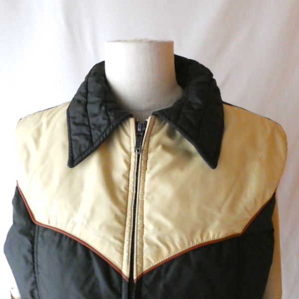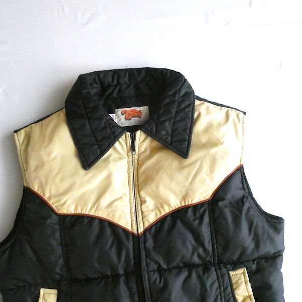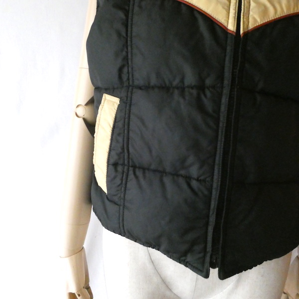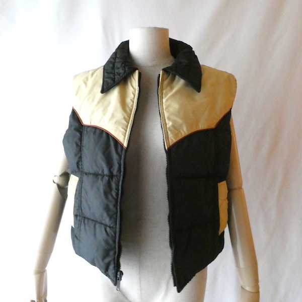 70〜80’s 黒ベージュ襟付きダウンベスト