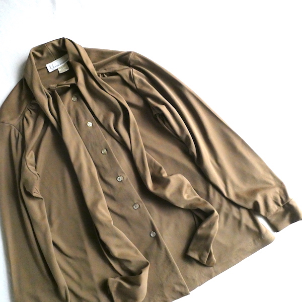 70’sコーヒーブラウンリボンボウブラウス