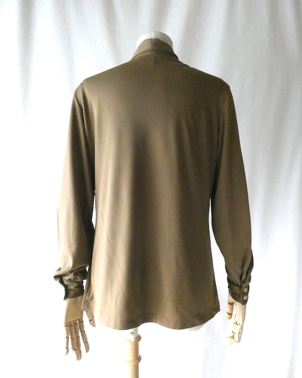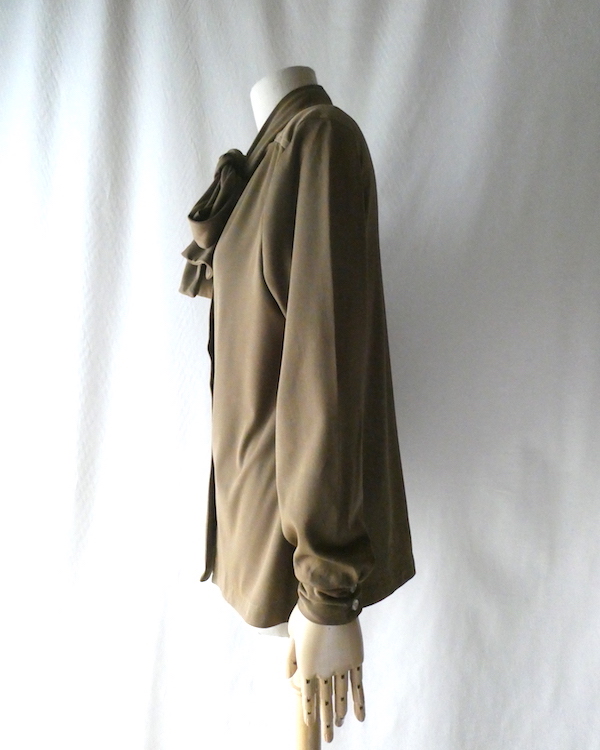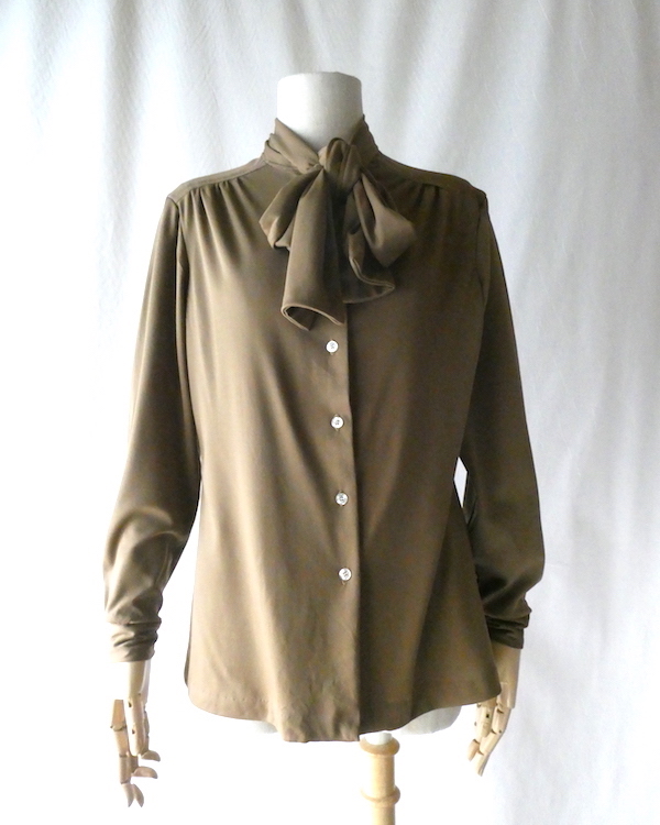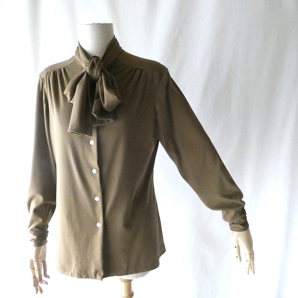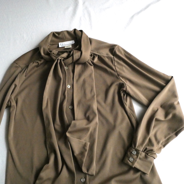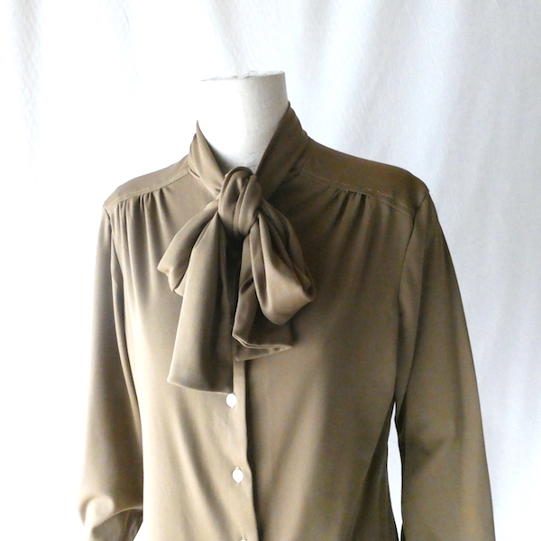 70’s coffee brown poly bow blouse