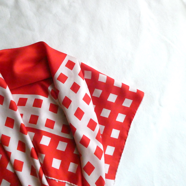 70’s 赤白◾️柄大判スカーフ