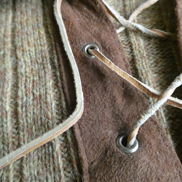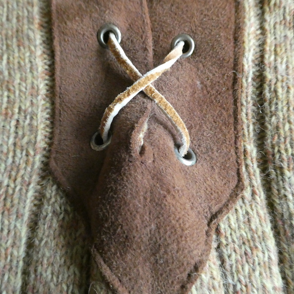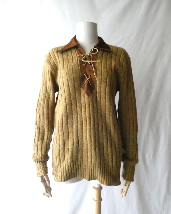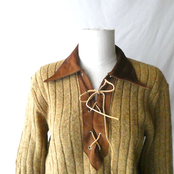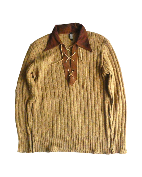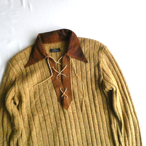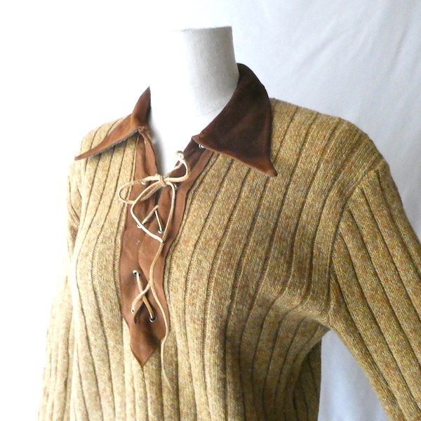 70’s フェイクスエード襟レースアップニット
