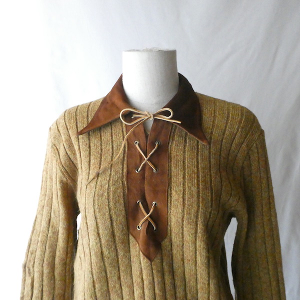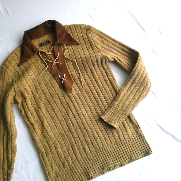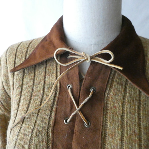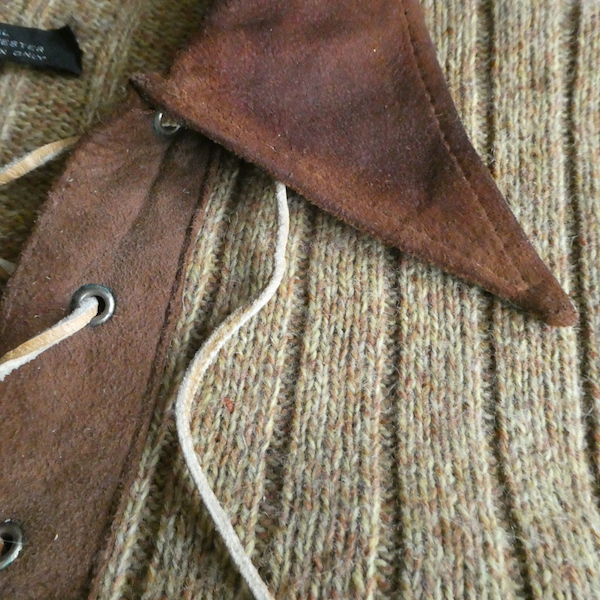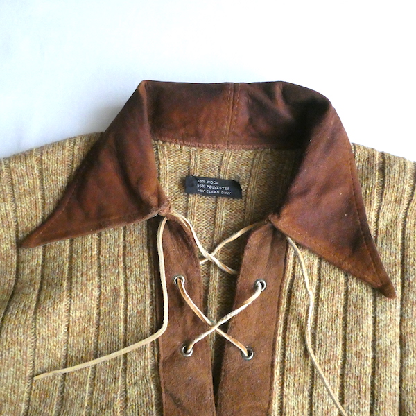 70’s fake suede collar lace up knit sweater