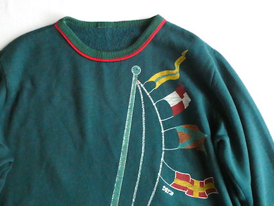 70’s フラッグ柄ダークグリーンスウェット