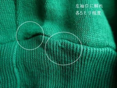 可愛らしいグリーンの長袖スウェットです。少しだけ光沢のあるツルッとしたアクリルハイゲージ。ハイネックにフリーダムスリーブで、レトロ感はしっかりありますが裾リブの絞りもなく何にでも合わせ易いアイテム。色味のポイントに着回せて便利ですよ。