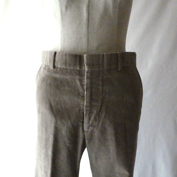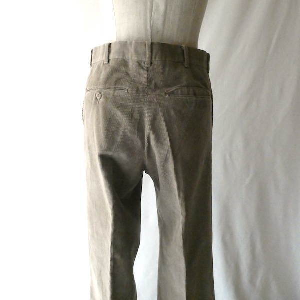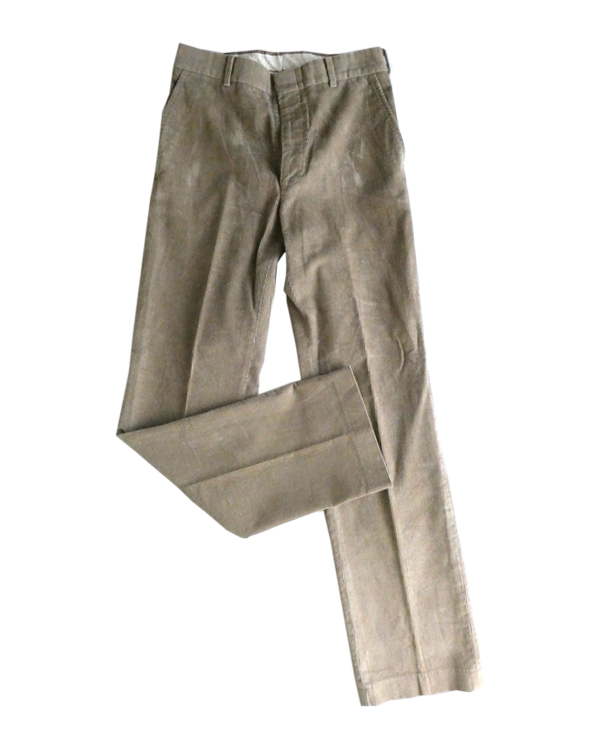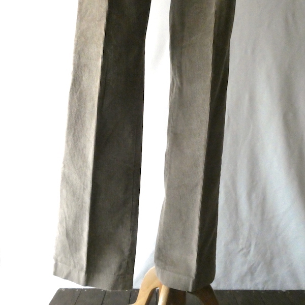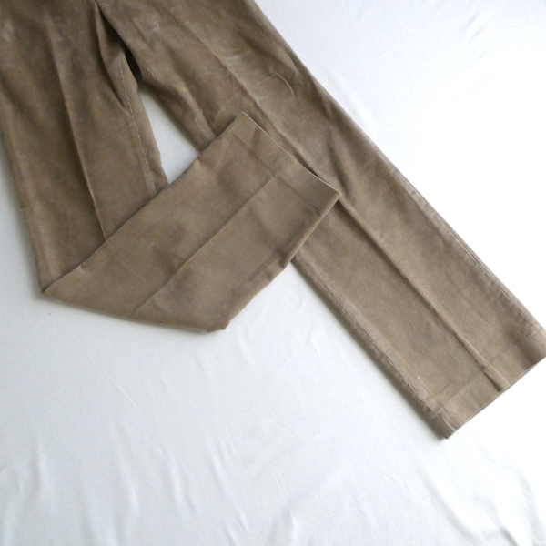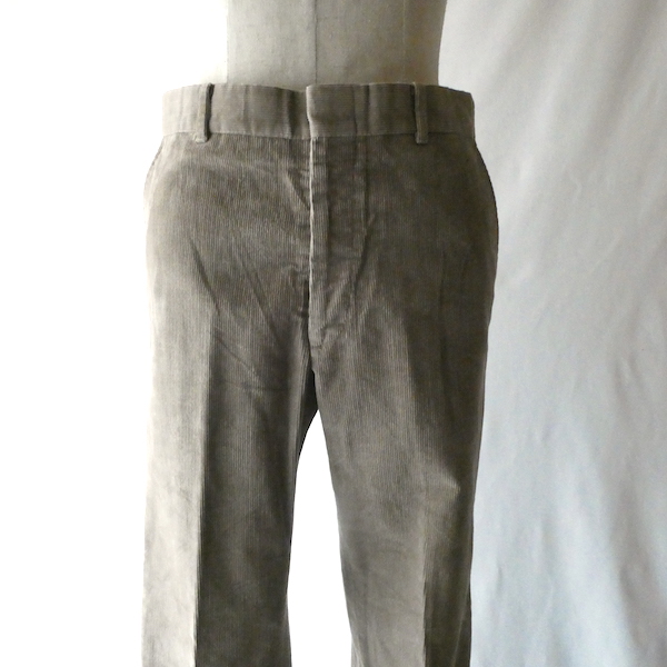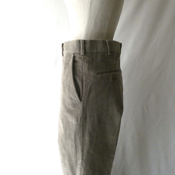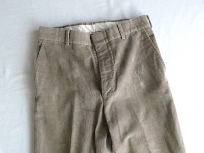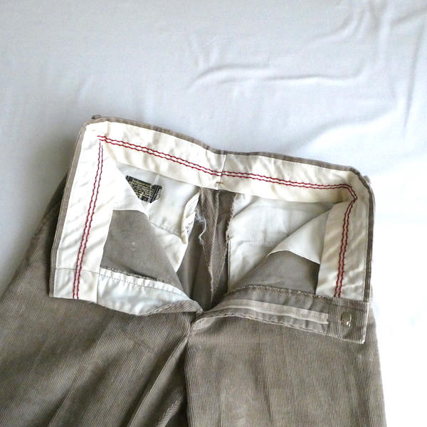 マクレガーのコーデュロイパンツです。タック無しのタイトなウエスト周りからスッと綺麗に落ちるシルエット。細畝のオークベージュカラーで広くシーズンをカバー出来そうなアイテム。1本あると着まわせて便利ですよ。