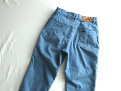 miss Leeのパンツです。ライトブルーのストレッチ素材(当時のストレッチなので、そこまでの伸縮性は無いのでご注意ください)しっかりピッタリとジャストで穿くと綺麗なサブリナパンツ系のスリムシルエットになります。短めに丈詰めしてフラットシューズ等と合わせても良さそう。緩めに穿くとスリムストレート位のシルエットです。少しくすみのあるブルーが落ち着いた雰囲気で◎