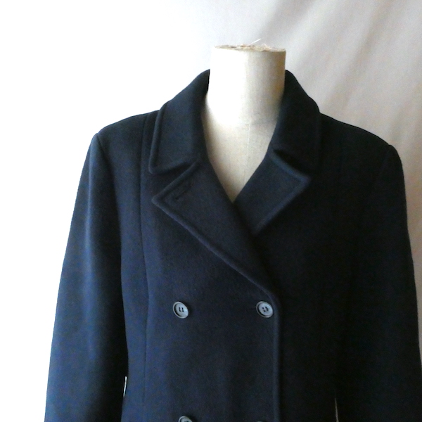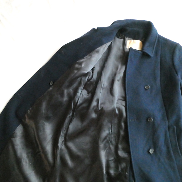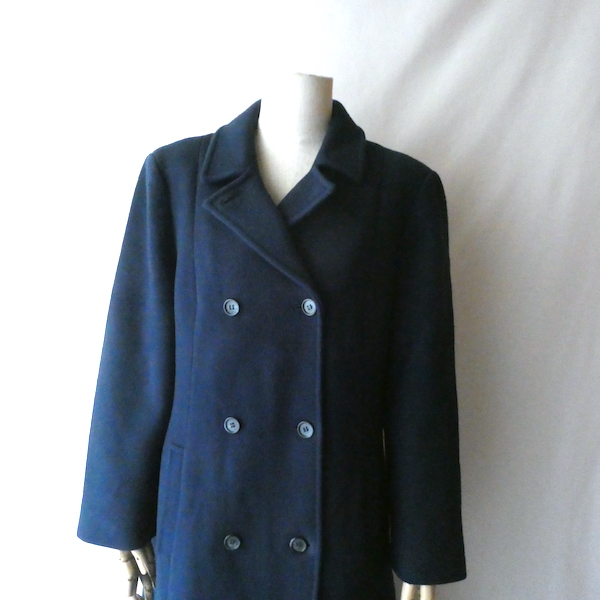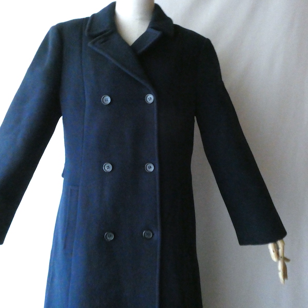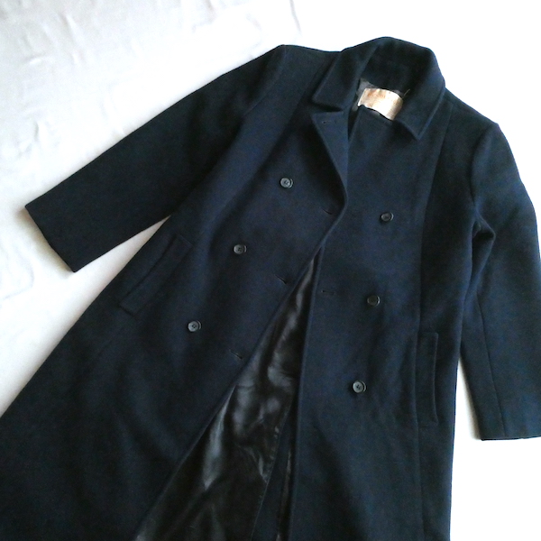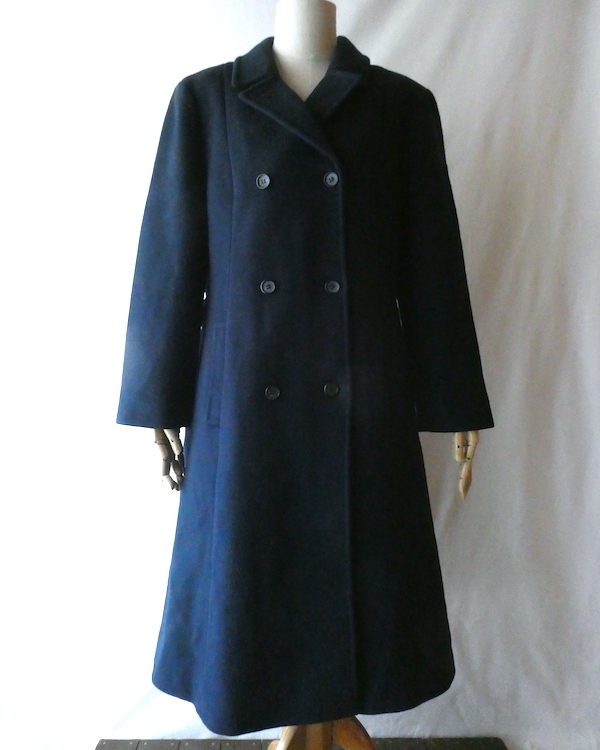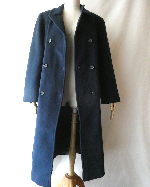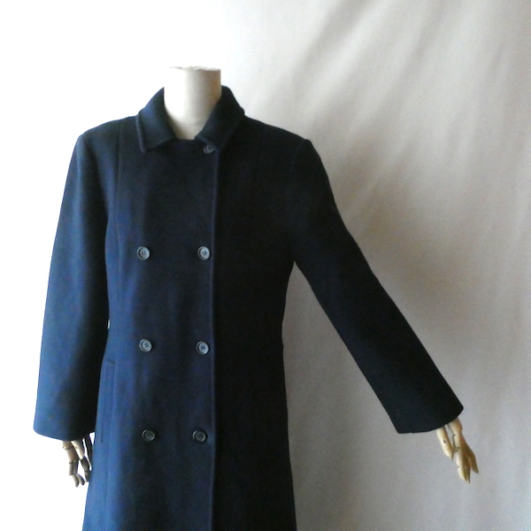 70’s navy wool double breasted long coat