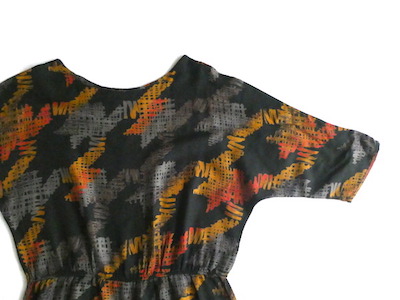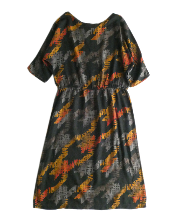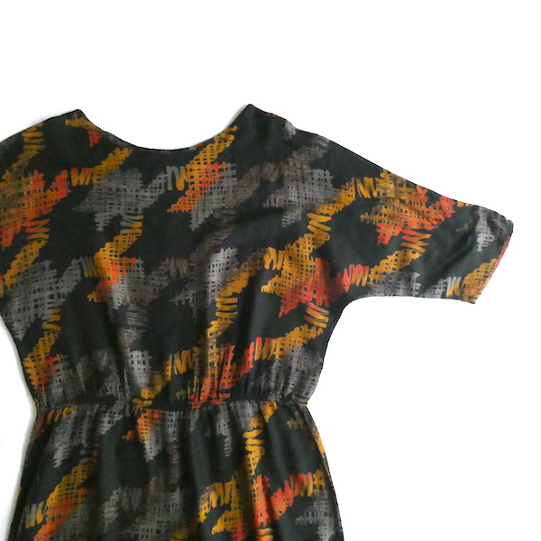 70’s オレンジグレー5部袖柄ワンピース