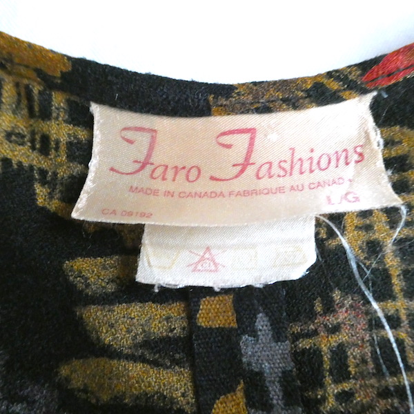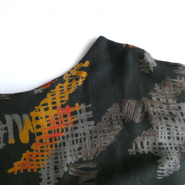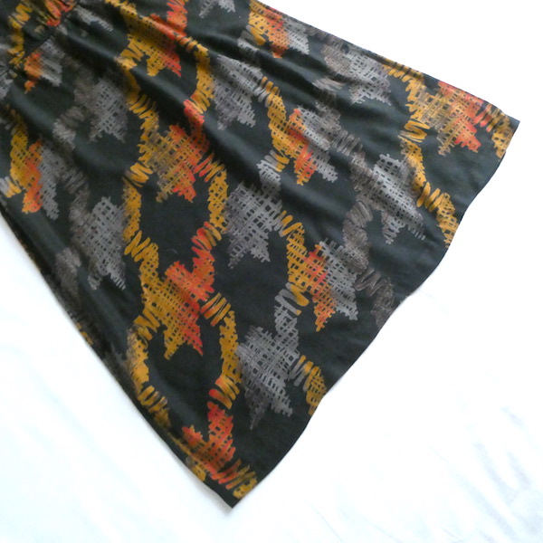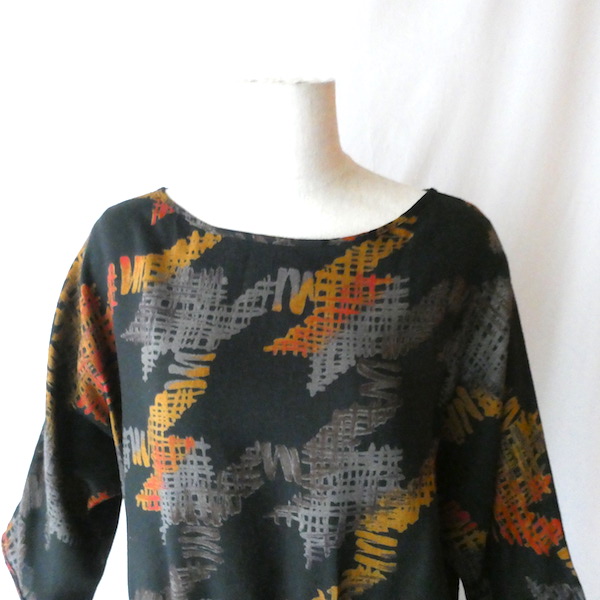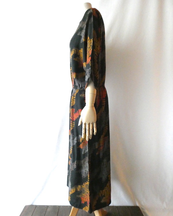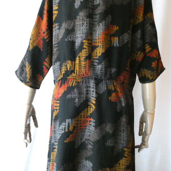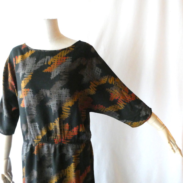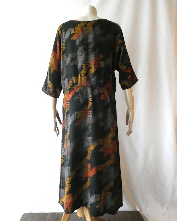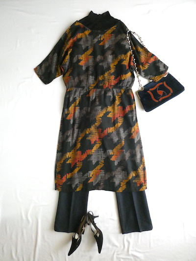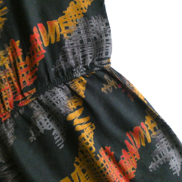70’s orange gray pattern black dress