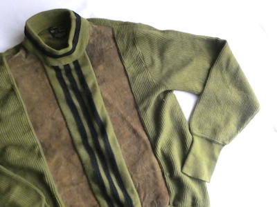 70’s スエードパネル抹茶色ハイネックニット