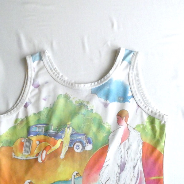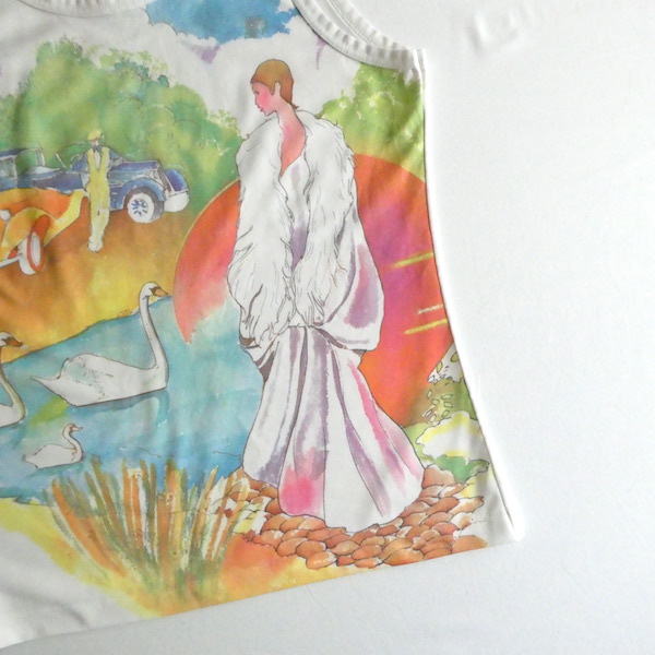 70’s swan lady printed poly tank top