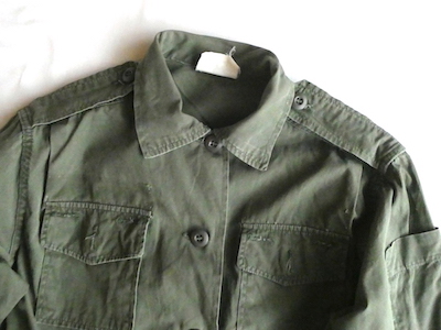 U.S. Armyのユーティリティーシャツ。パリッと薄手のコットンポプリン。薄手のジャケットとして使い易い一枚です。肩にはエポレット、左袖にアームポケット付き。アームも胸ポケもペン刺し有りです。見頃の内側に風除け生地が付きます(使わない方は内側に折り返せます)パッチ等も無く、極シンプルなので、カスタムのベースにも便利ですよ。