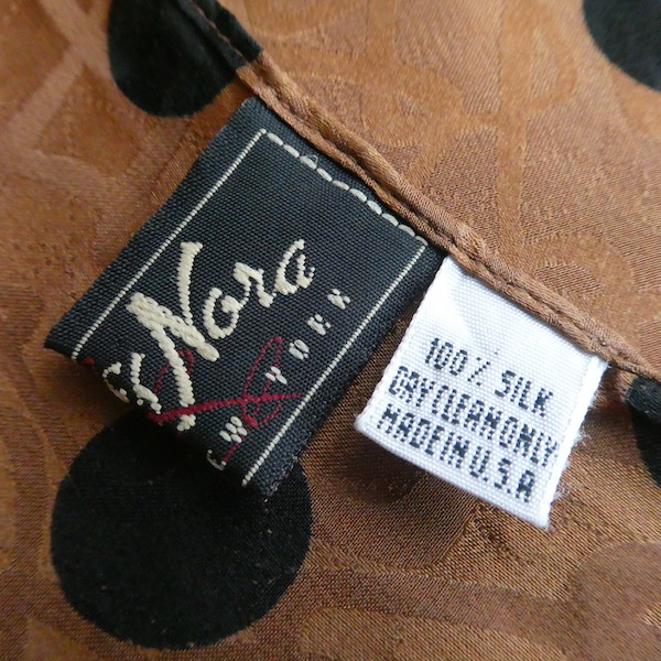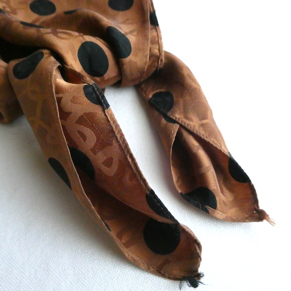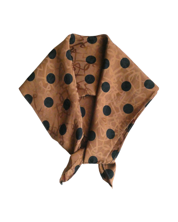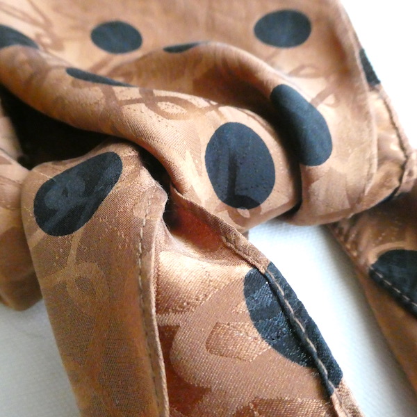80〜90’s black dots brown silk scarf