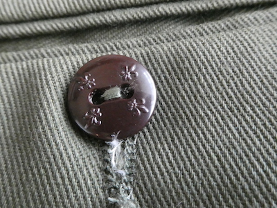 ボーイスカウトのパンツ。濃いめアーミーグリーンのツイル生地。コットンポリでまだ色もしっかり残った状態です。比較的太めのシルエットで、腰回りからストンと綺麗に落ちます。気負わずガンガン使えて、持っていると便利なアイテムです。