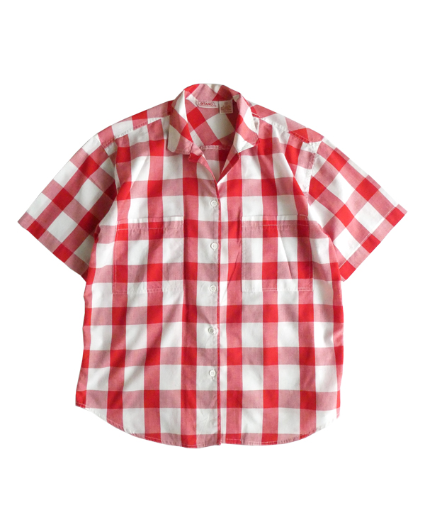 80’s 赤白ギンガム半袖シャツ