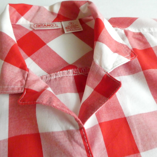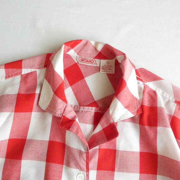 80’s red white gingham check short sleeve shirt