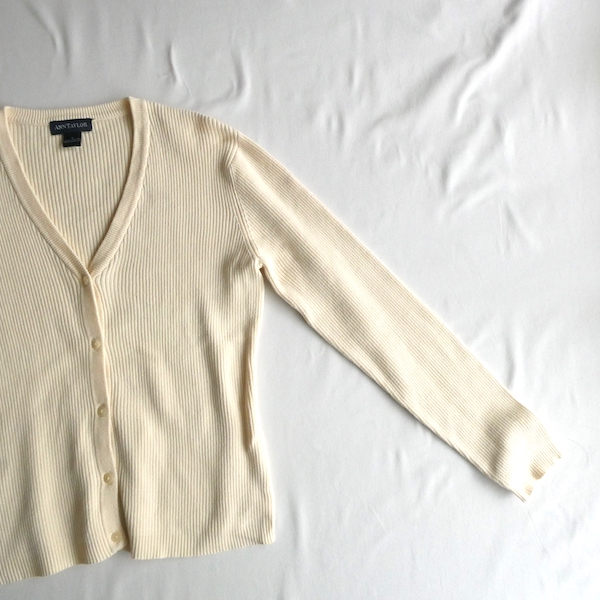 90's ivory cotton rib v-neck cardigan
