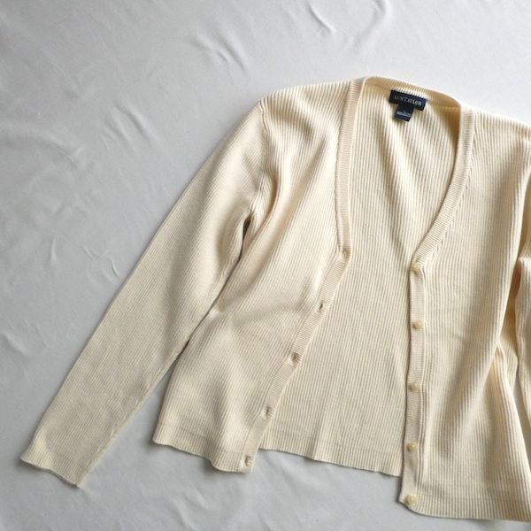 90’s アイボリーコットンリブカーディガン