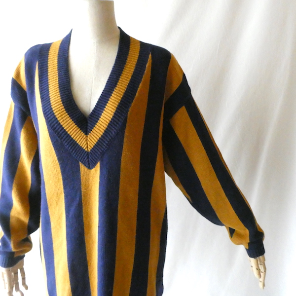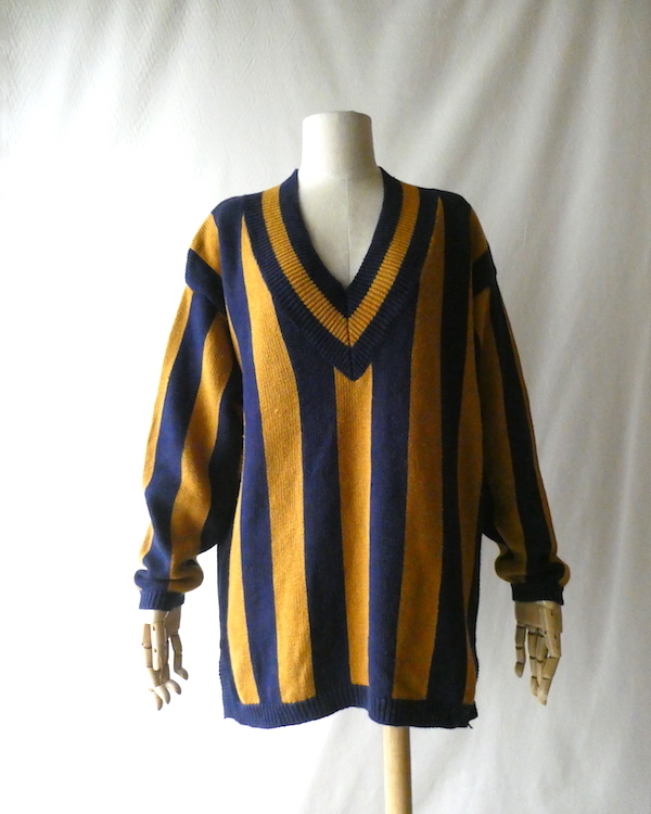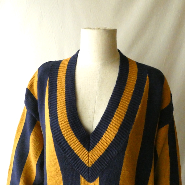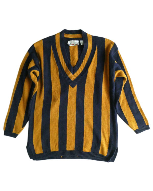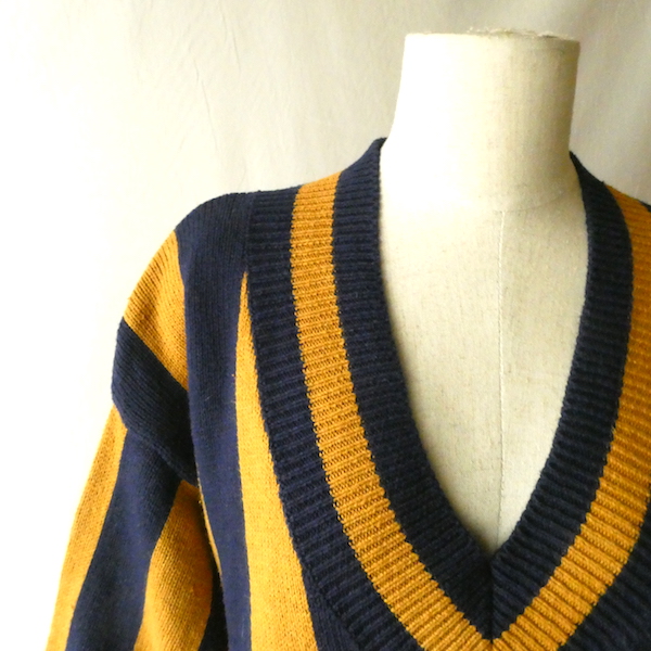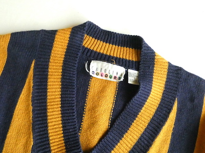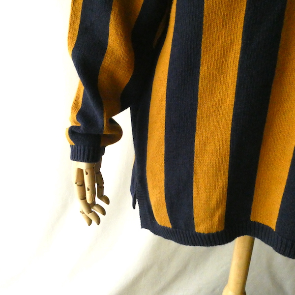 90’s マスタードネイビーストライプコットンニット
