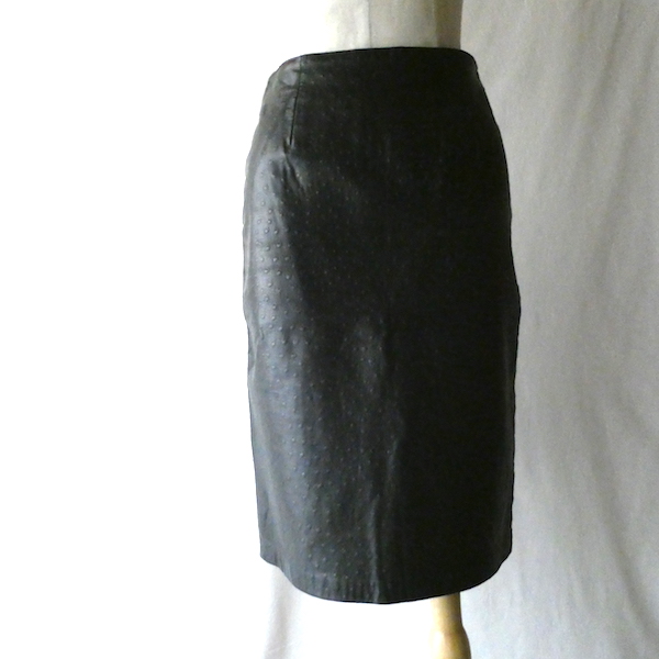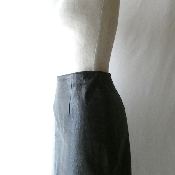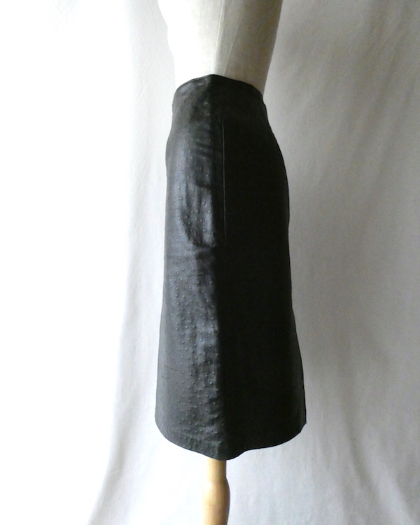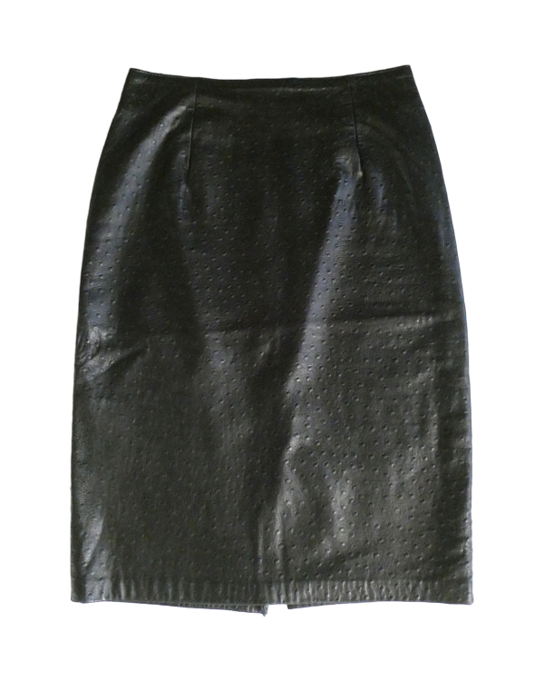 90’s ostrich embossed black leather skirt