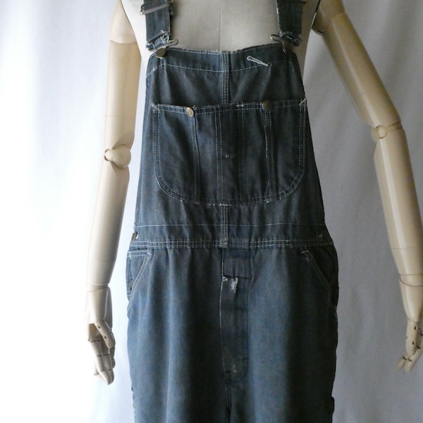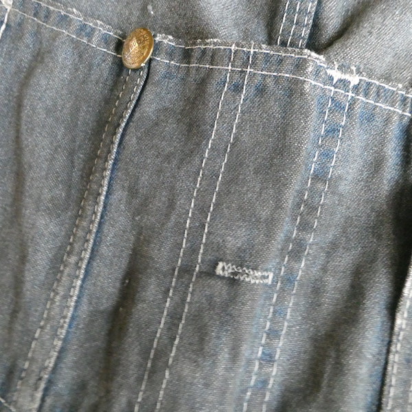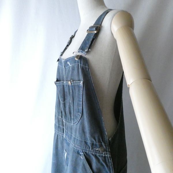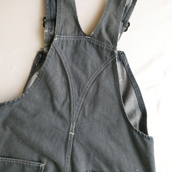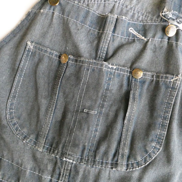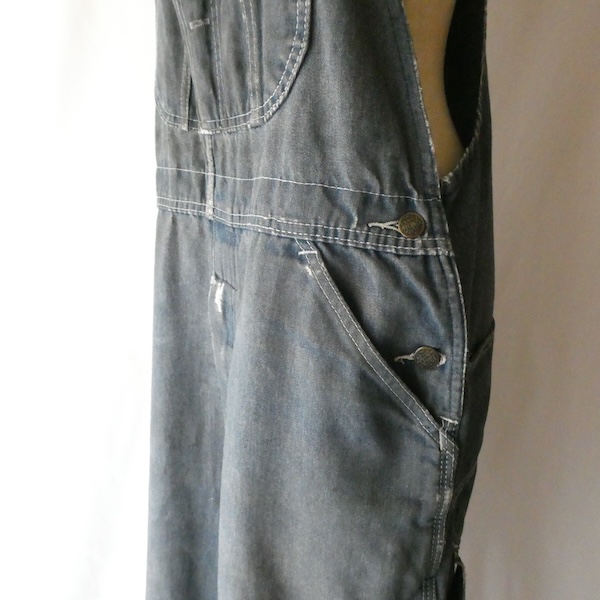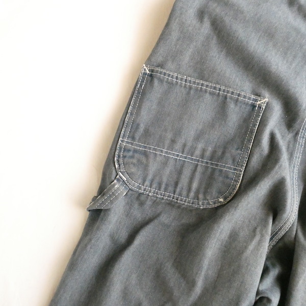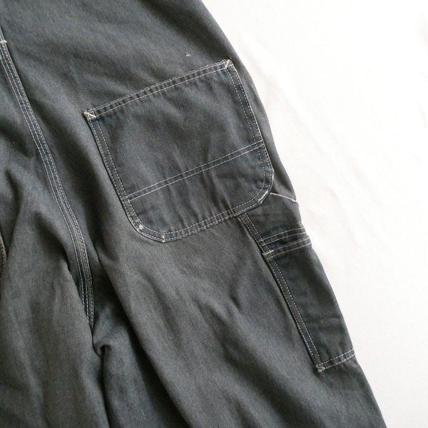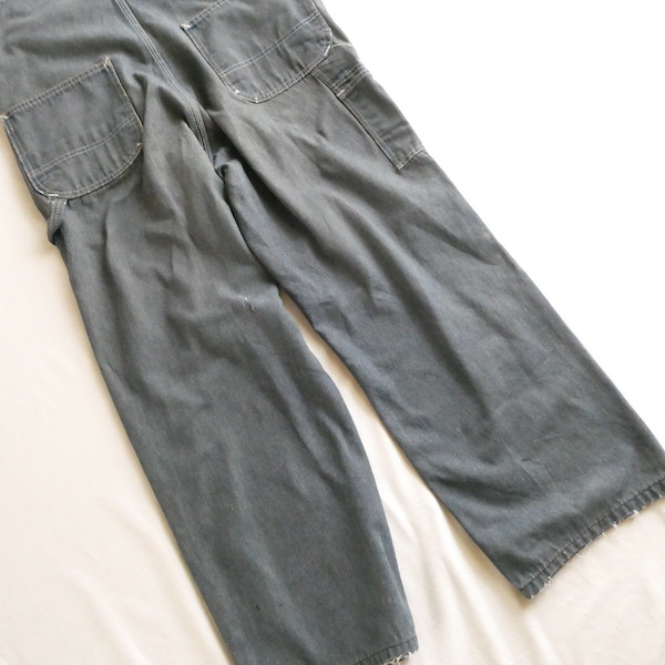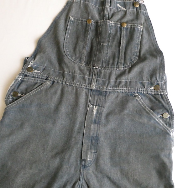 Searsローバックスのオーバーオールです。少し青みを感じる色落ちグレーに白ステッチ。着込まれて洗い込まれて、くったり柔らかです。ペンキ汚れや各所に擦れや傷等、多々有りますが、ダメージ具合が良いアイテム◎。やれ感やこの手の雰囲気がお好きな方に。