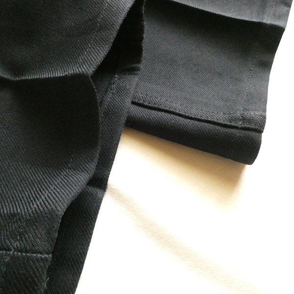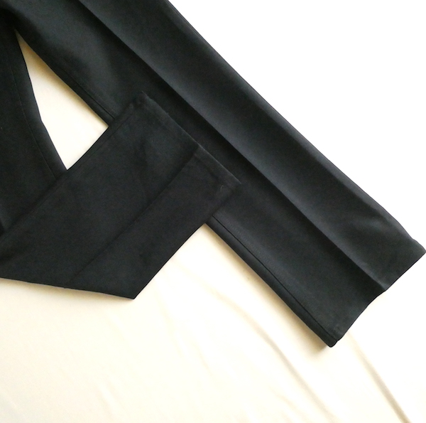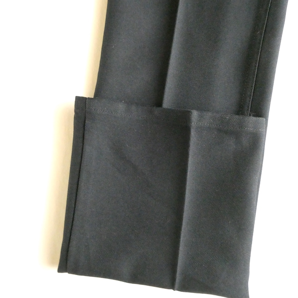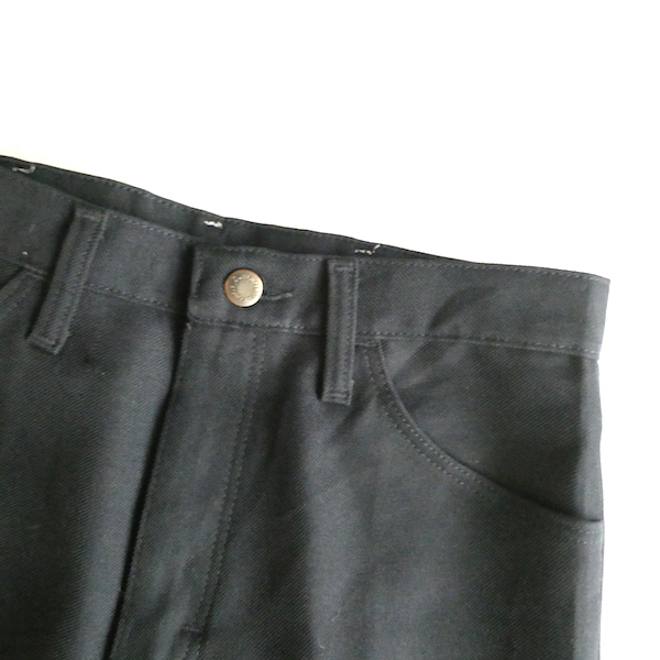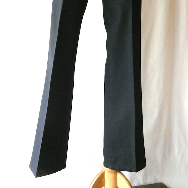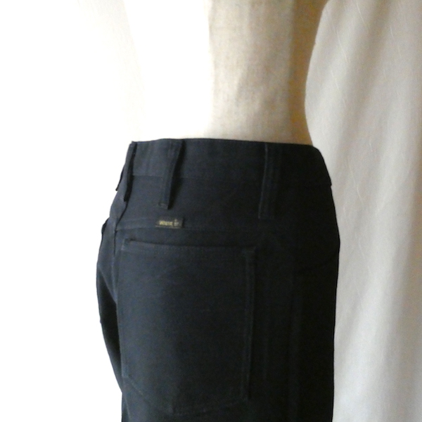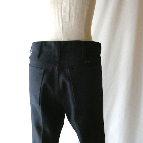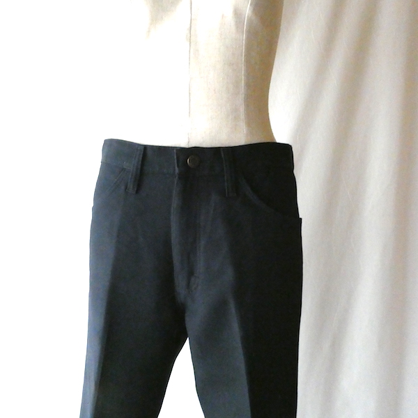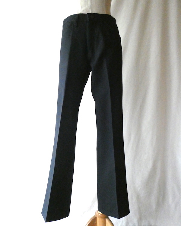 ラングラーのスラックスです。ほぼ黒ですが光の加減で少しネイビー寄りにも見えるような色味。センタープレス入りのスッキリ細身なフレアシルエット。ヒール等にも合わせ易いですよ。メキシコ製です。
