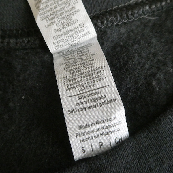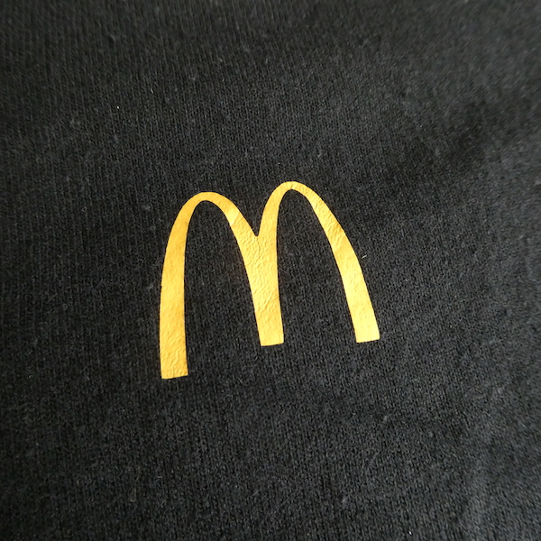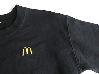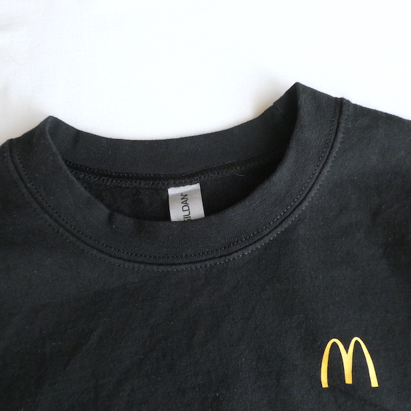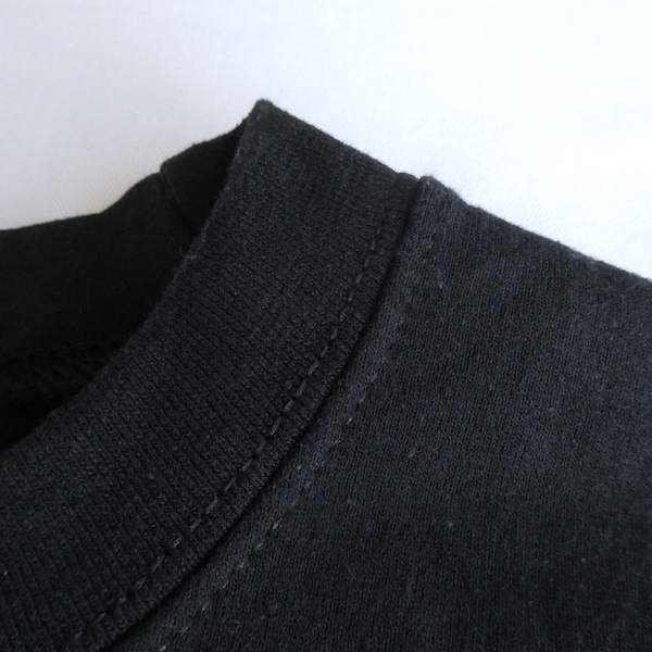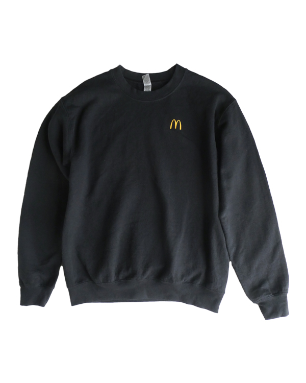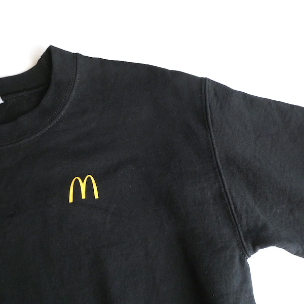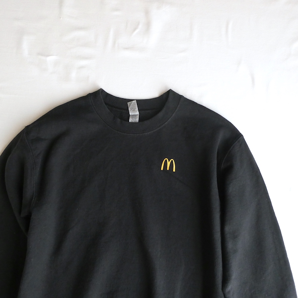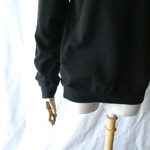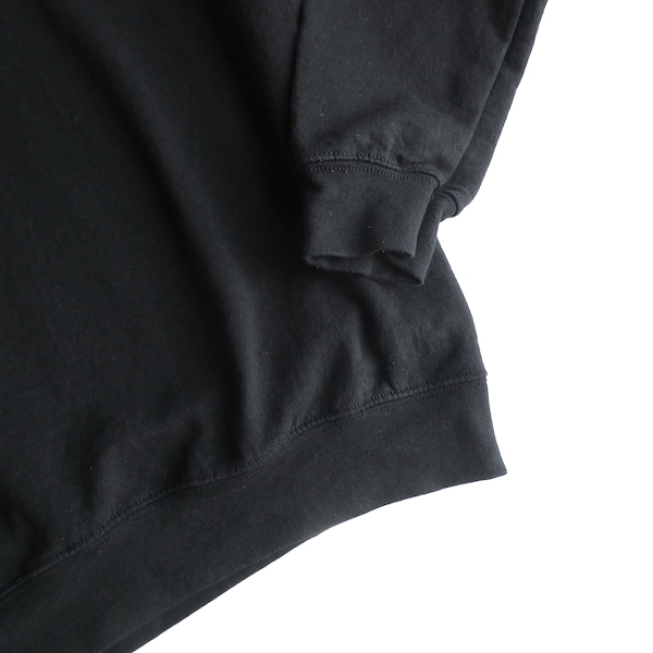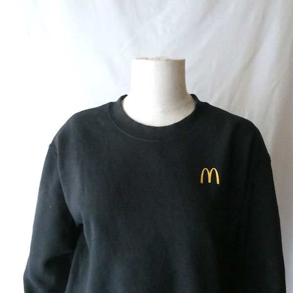 大きめサイズのブラックスウェット。身幅も広めでリブの長さも短め、インナーを入れたりレイヤードし易いシルエットです。左胸に付いた小さなイエロー『M』がポイント。まだ黒が残る感じの色落ちで程良い綺麗めのこなれ感です。